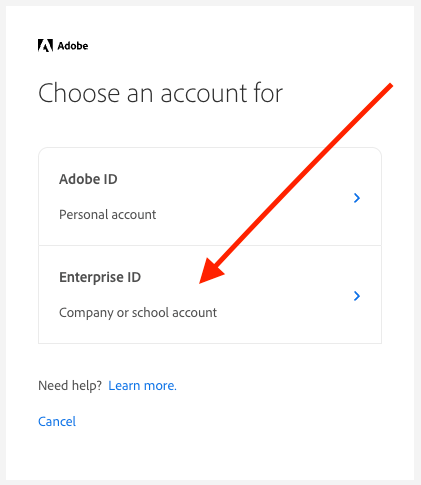 After you login, in the next step select the Enterprise ID option, and then agree to the Terms of Use.