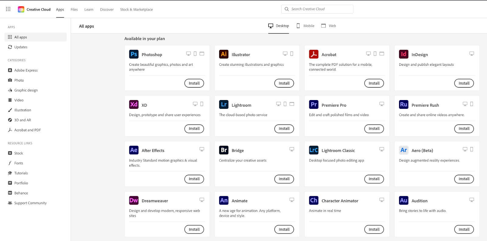 Once logged in, find and install the App you need.